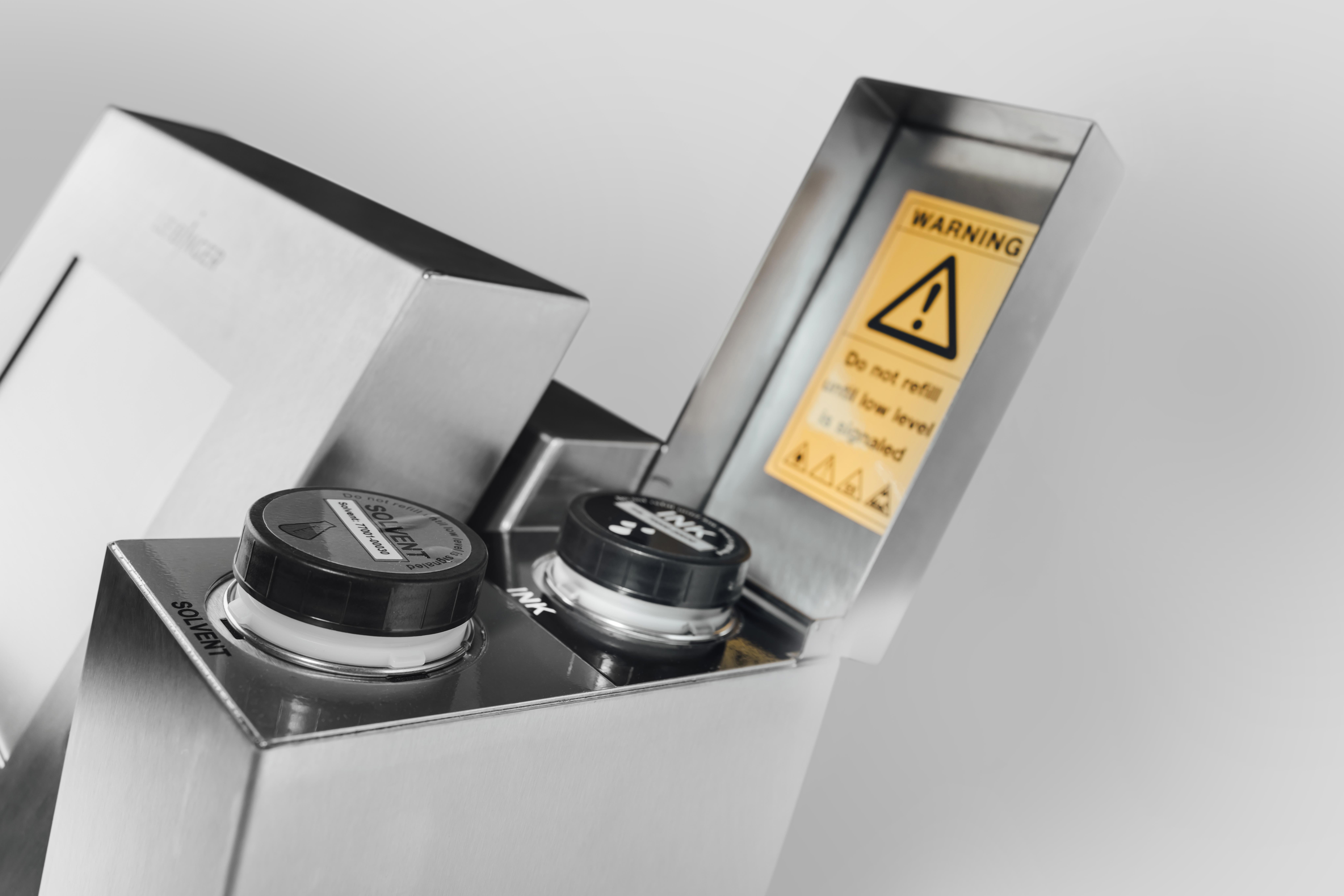 O desafio: tintas pigmentadas não podem ser usadas em uma impressora a jato de tinta padrão. Isso resultaria em problemas em curto prazo, porque o pigmento nas tintas de contraste se acumularia continuamente nos componentes hidráulicos e na cabeça de impressão do sistema de marcação. A qualidade da marcação sofre e a disponibilidade e confiabilidade da impressora a jato de tinta é reduzida. Paul LEIBINGER enfrentou esse problema e desenvolveu sua própria impressora de tinta pigmentada, na qual os pigmentos de tinta não podem ser ajustados.
